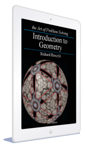 <p>Learn the fundamentals of geometry from former USA Mathematical Olympiad winner Richard Rusczyk. Topics covered in the book include similar triangles, congruent triangles, quadrilaterals, polygons, circles, funky areas, power of a point, three-dimensional geometry, transformations, and much more. </p> <p>The text is structured to inspire the reader to explore and develop new ideas. Each section starts with problems, so the student has a chance to solve them without help before proceeding. The text then includes solutions to these problems, through which geometric techniques are taught. Important facts and powerful problem solving approaches are highlighted throughout the text. In addition to the instructional material, the book contains over 900 problems. Full solutions to all of the problems, not just answers, are built into the book.</p> <p>This book can serve as a complete geometry course, and is ideal for students who have mastered basic algebra, such as solving linear equations. Middle school students preparing for MATHCOUNTS, high school students preparing for the AMC, and other students seeking to master the fundamentals of geometry will find this book an instrumental part of their mathematics libraries. This book is used in our <a href="/school/course/intro-geometry">Introduction to Geometry</a> course.</p>