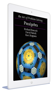 <p>Prealgebra prepares students for the rigors of algebra and also teaches students problem-solving techniques to prepare them for prestigious middle school math contests such as MATHCOUNTS, MOEMS, and the AMC 8.</p> <p>Topics covered in the book include the properties of arithmetic, exponents, primes and divisors, fractions, equations and inequalities, decimals, ratios and proportions, unit conversions and rates, percents, square roots, basic geometry (angles, perimeter, area, triangles, and quadrilaterals), statistics, counting and probability, and more!</p> <p>The text is structured to inspire the reader to explore and develop new ideas. Each section starts with problems, giving the student a chance to solve them without help before proceeding. The text then includes solutions to these problems, through which algebraic techniques are taught. Important facts and powerful problem solving approaches are highlighted throughout the text. In addition to the instructional material, the book contains well over 1000 problems. Full solutions to all of the problems, not just answers, are built into the book.</p> <p>This book can serve as a complete Prealgebra course.</p> <p>Our site includes a free innovative online learning system, <a href="http://wf2.aopstest.com/alcumus">Alcumus</a>, and a free <a href="http://wf2.aopstest.com/videos/prealgebra">collection of videos</a>, both aligned to this textbook. This book is used in both of our <a href="/school/course/prealgebra1">Prealgebra 1</a> and <a href="/school/course/prealgebra2">Prealgebra 2</a> courses. </p>